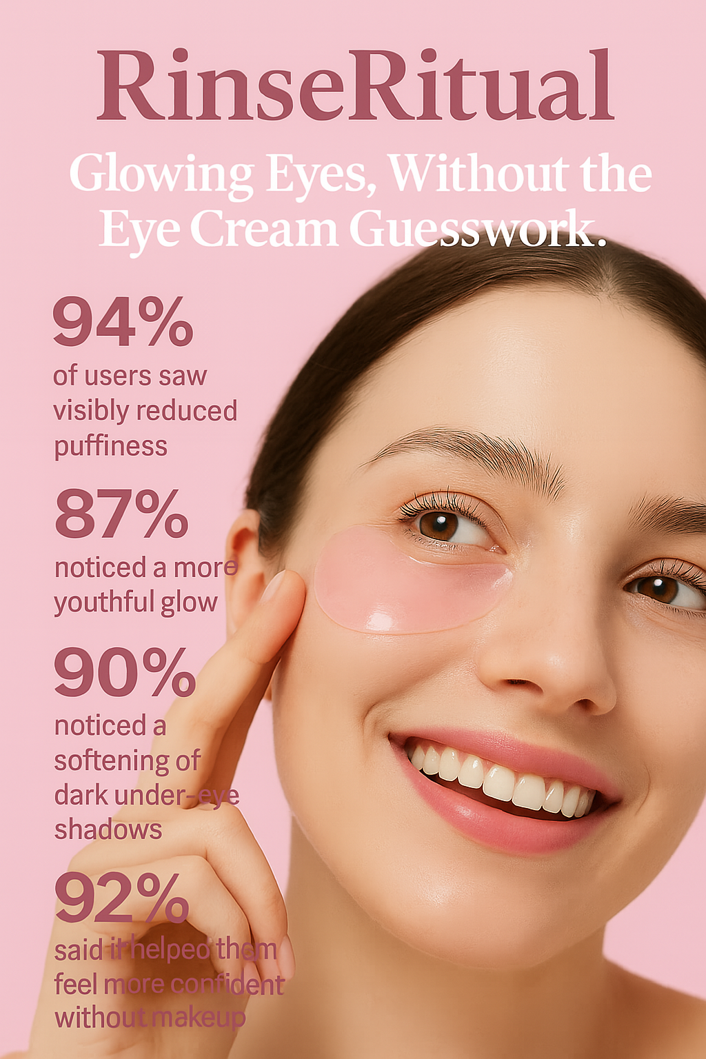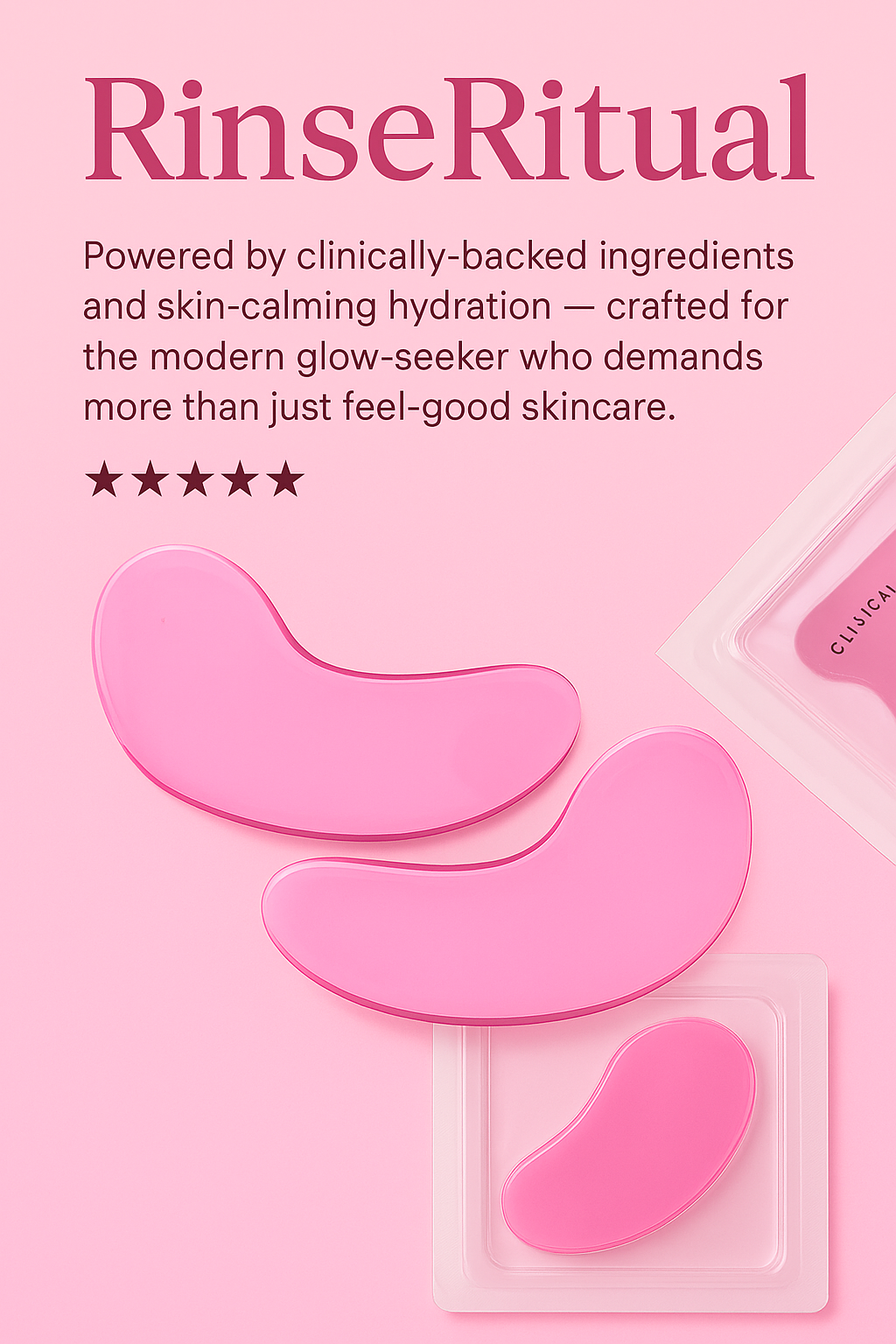 RinseRitual™ was created to cut through the noise. Tired of flashy packaging and empty promises, we set out to make under-eye patches that actually deliver. Our formula uses dermatologist-trusted, clinically-backed ingredients to visibly reduce puffiness, brighten dark circles, smooth fine lines, and restore a rested, radiant look — all while staying gentle on sensitive skin. No glitter. No gimmicks. Just real results and a ritual that works.